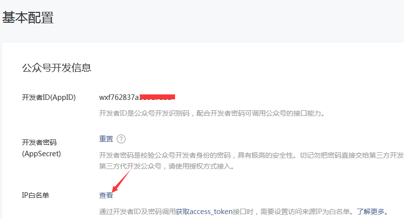 为了提高公众平台开发者接口调用的安全性,避免一旦开发者ID和密码泄露后给帐号造成损失。微信官方对调用“获取access_token”接口增加IP白名单校验:只有将IP地址设置为公众号的IP白名单,才能成功调用该接口。 开启IP白名单的步骤如下:1、登录公众平台 https://mp.weixin.qq.com/,进入开发->基本配置页面2、点击配置进入IP白名单设置页 3、填写IP地址列表119....